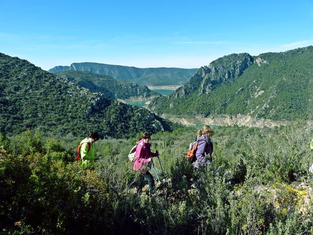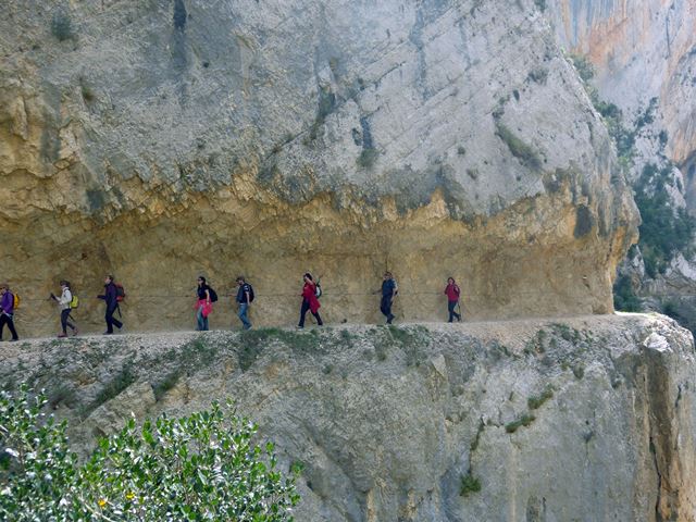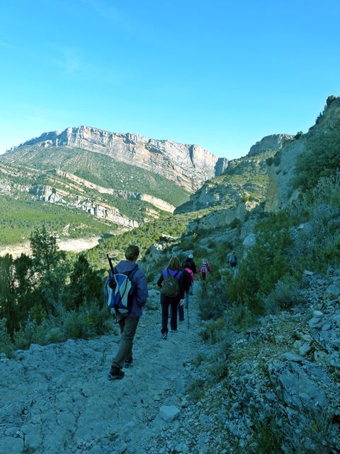 Recorregut.- Aparcament, ermita romànica del segle XI de la Pertusa (700 m. d’alçada) en un enclavament de guaita que defensava l’entrada al congost amb unes excel·lent vistes, baixarem pel camí al fons del barranc (565 m) i el mas de la Pardina, pujant desprès fins el serrat que revoltarem on se’ns sobre una esplèndida visió del congost i seguir cap el mas de Carlets (820 m.) amb dues grans alzines, fins assolir el nou espectacular camí excavat a la roca que va descendint suaument per aquest gran congost,