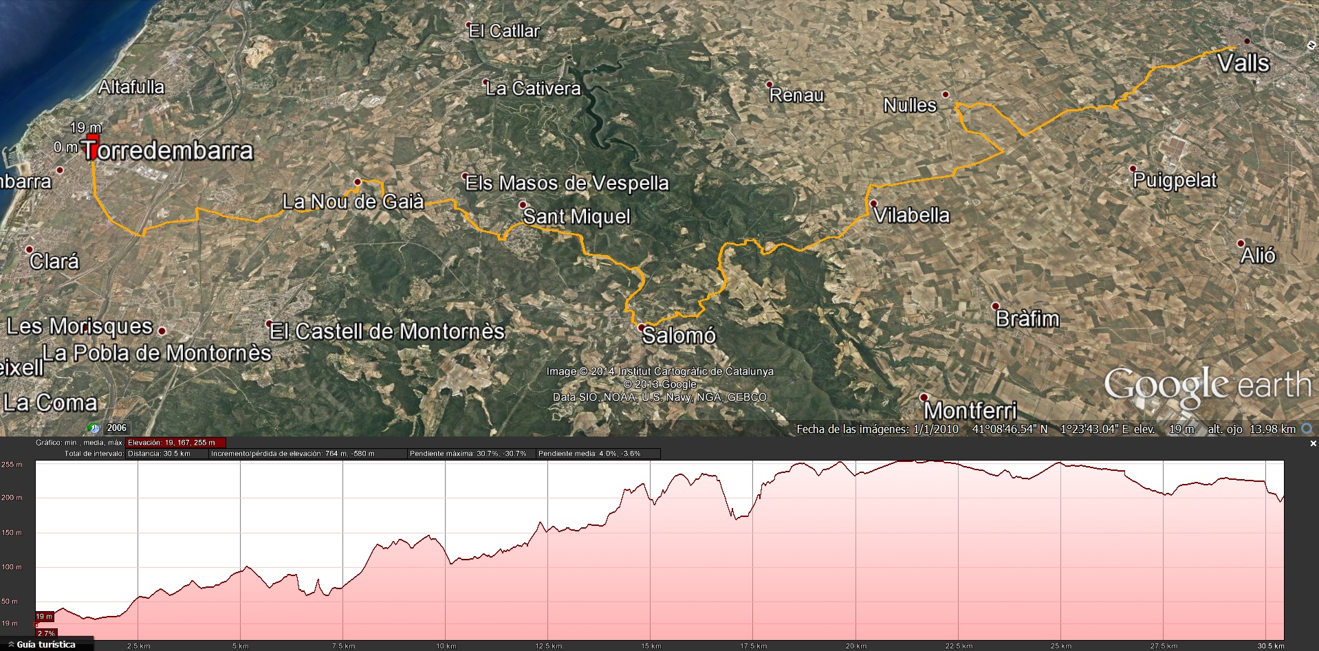 Sortida d’uns 30km oberta a tothom, sortirem de Torredembarra direcció la Pobla de Montornès, anirem cap a la Nou de Gaia i d’aquí cap a Vespella de Gaia i Salomó, un cop a Salomó seguirem direcció a Nulles passant per Vilabella, i finalment arribarem a Valls.