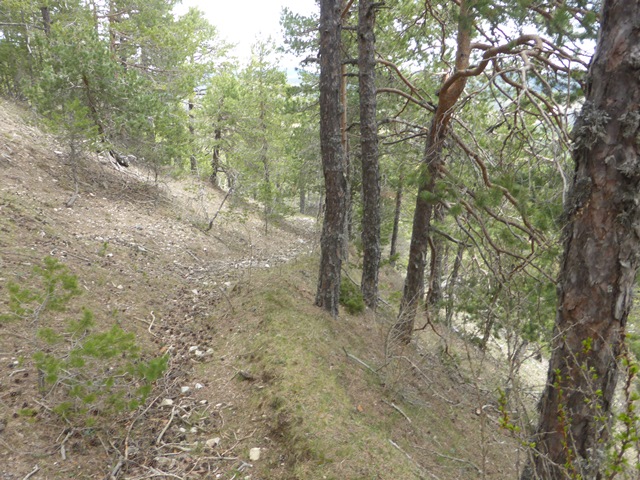Al cap d’uns minuts de caminar per la carena haurem d’anar amb compte per trobar el punt on baixarem ja que és un camí molt poc visible, l’entrada esta senyalitzada amb aquetes fites.