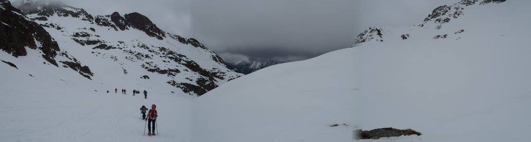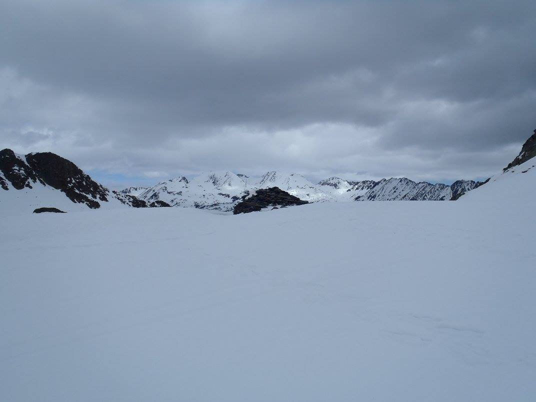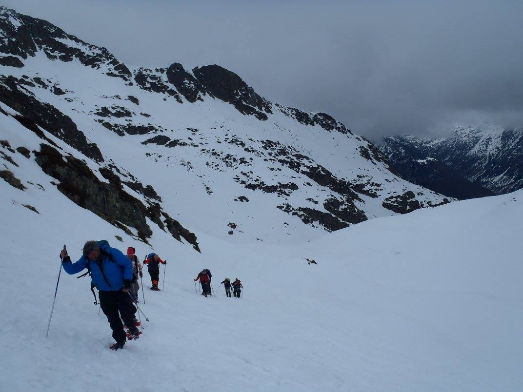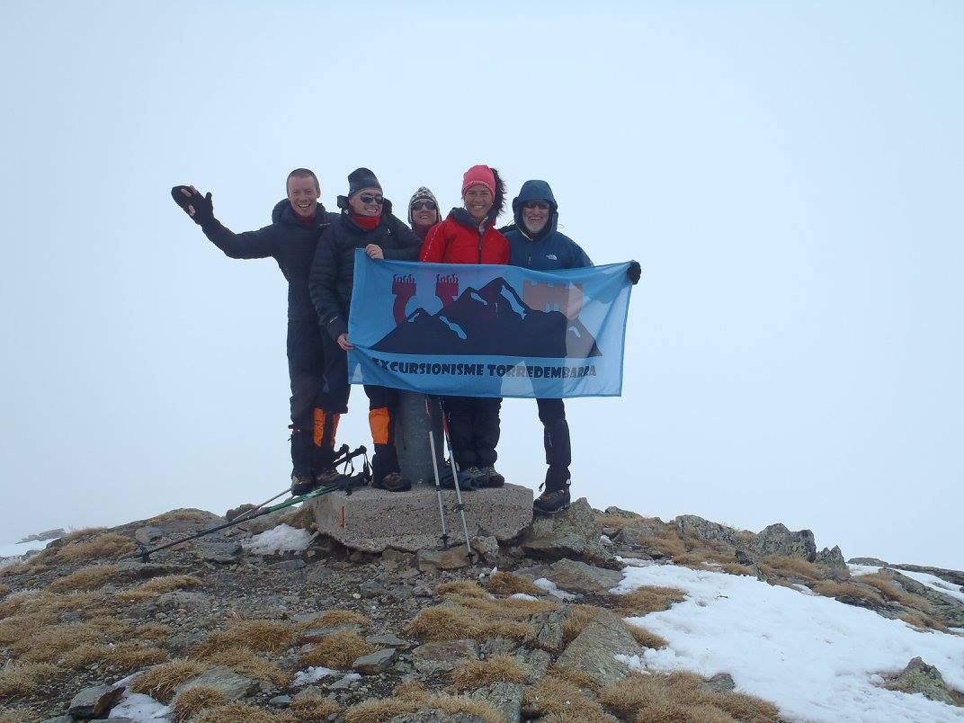 Arribem a l’alçada de l’Estany de Mascarida, completament gelat i innivat, es dóna la opció al grup de decidir si es vol continuar vers al cim, o donar mitja volta, es fan dos grupets, uns aniran xino-xano desfent el camí de tornada, els altres intentaran assolir el cim. Abans de separar-nos ens fem la fotito de grup!