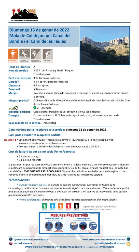 19 diciembre, 202125 enero, 2022 Excursionisme Torredembarra (16/01/2022) Mola de Colldejou pel Canal del Bondia i Camí de les Teules Comparte esto: Haz clic para compartir en X (Se abre en una ventana nueva) X Haz clic para compartir en Facebook (Se abre en una ventana nueva) Facebook Me gusta Cargando...