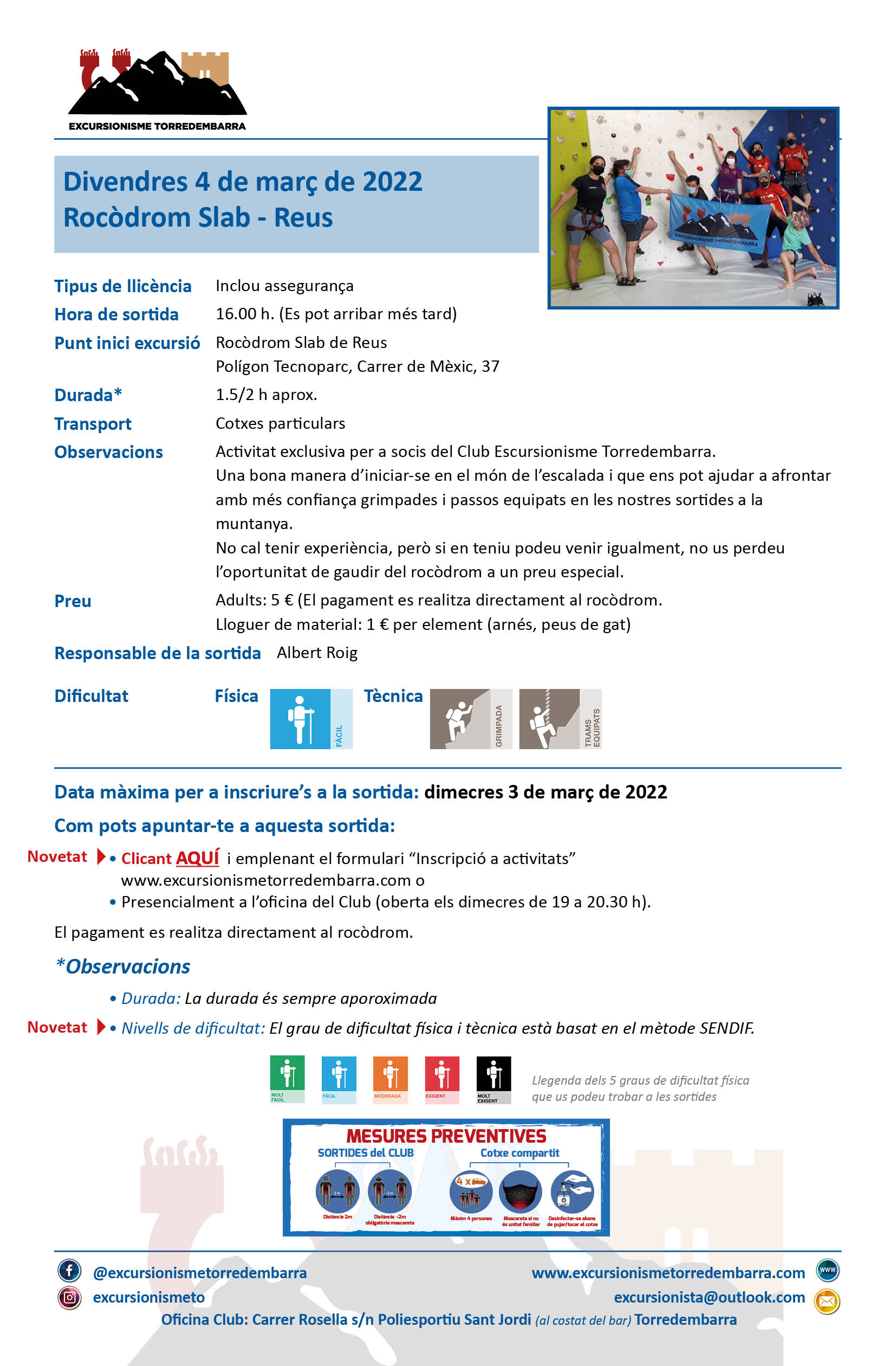 27 febrero, 20225 marzo, 2022 Excursionisme Torredembarra (04/03/2022) Rocòdrom Comparte esto: Haz clic para compartir en X (Se abre en una ventana nueva) X Haz clic para compartir en Facebook (Se abre en una ventana nueva) Facebook Me gusta Cargando...