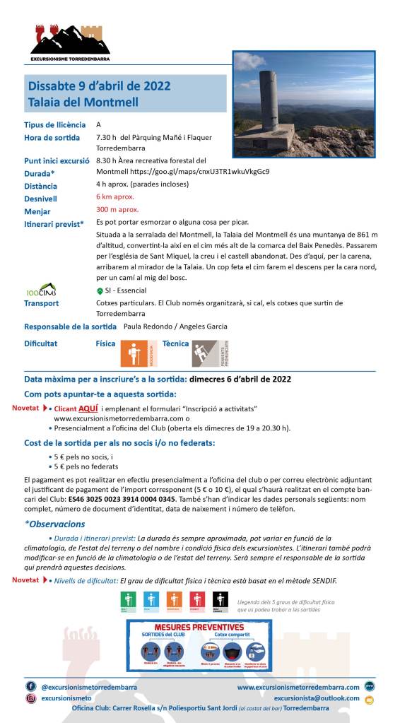 19 marzo, 202211 abril, 2022 Excursionisme Torredembarra (09/04/2022) Talaia del Montmell Comparte esto: Haz clic para compartir en X (Se abre en una ventana nueva) X Haz clic para compartir en Facebook (Se abre en una ventana nueva) Facebook Me gusta Cargando...