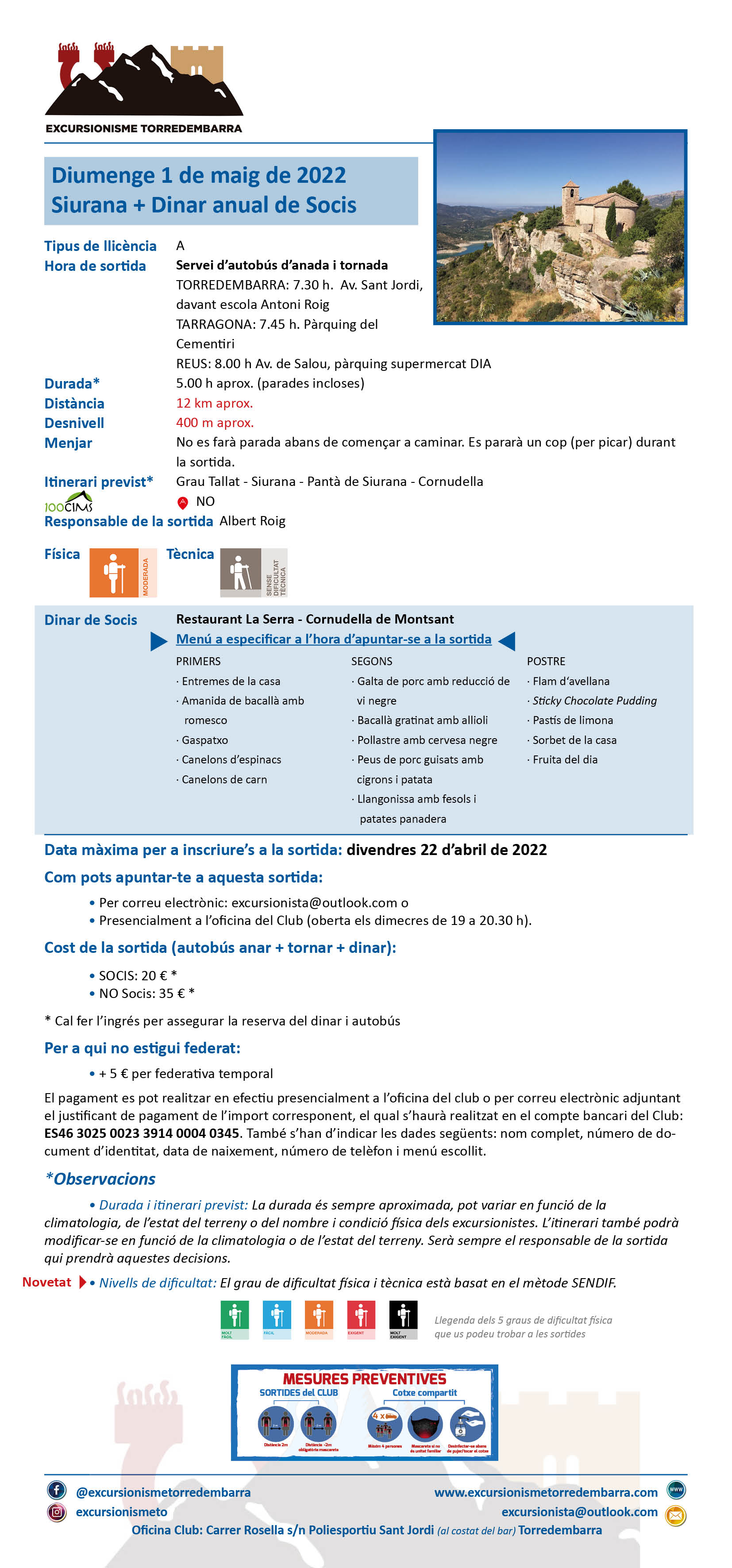 19 marzo, 20226 mayo, 2022 Excursionisme Torredembarra (01/05/2022) Siurana + dinar anual socis Comparte esto: Haz clic para compartir en X (Se abre en una ventana nueva) X Haz clic para compartir en Facebook (Se abre en una ventana nueva) Facebook Me gusta Cargando...