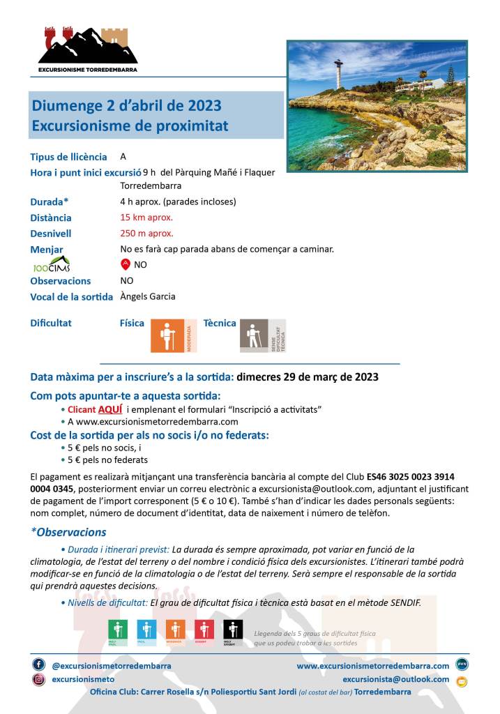 27 febrero, 20232 abril, 2023 Excursionisme Torredembarra (02/04/2023) Excursionisme de proximitat Comparte esto: Compartir en X (Se abre en una ventana nueva) X Comparte en Facebook (Se abre en una ventana nueva) Facebook Me gusta Cargando...