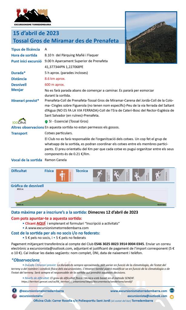 25 marzo, 202315 abril, 2023 Excursionisme Torredembarra (15/04/2023) Tossal Gros de Miramar des de Prenafeta Comparte esto: Haz clic para compartir en X (Se abre en una ventana nueva) X Haz clic para compartir en Facebook (Se abre en una ventana nueva) Facebook Me gusta Cargando...