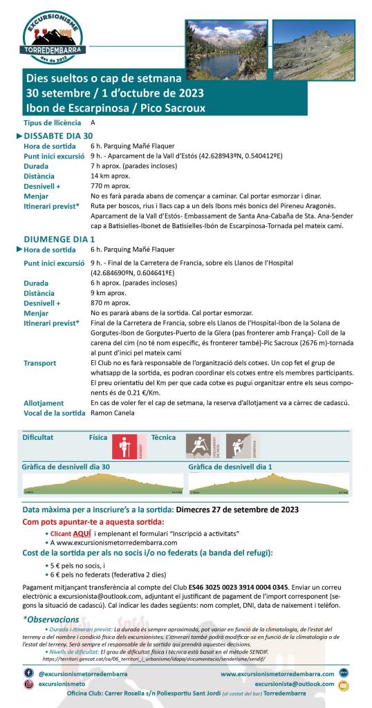 2 agosto, 202321 octubre, 2023 Excursionisme Torredembarra (30-9+1-10/2023) Ibon de Escarpinosa i/o Pico Sacroux Comparte esto: Compartir en X (Se abre en una ventana nueva) X Comparte en Facebook (Se abre en una ventana nueva) Facebook Me gusta Cargando...
