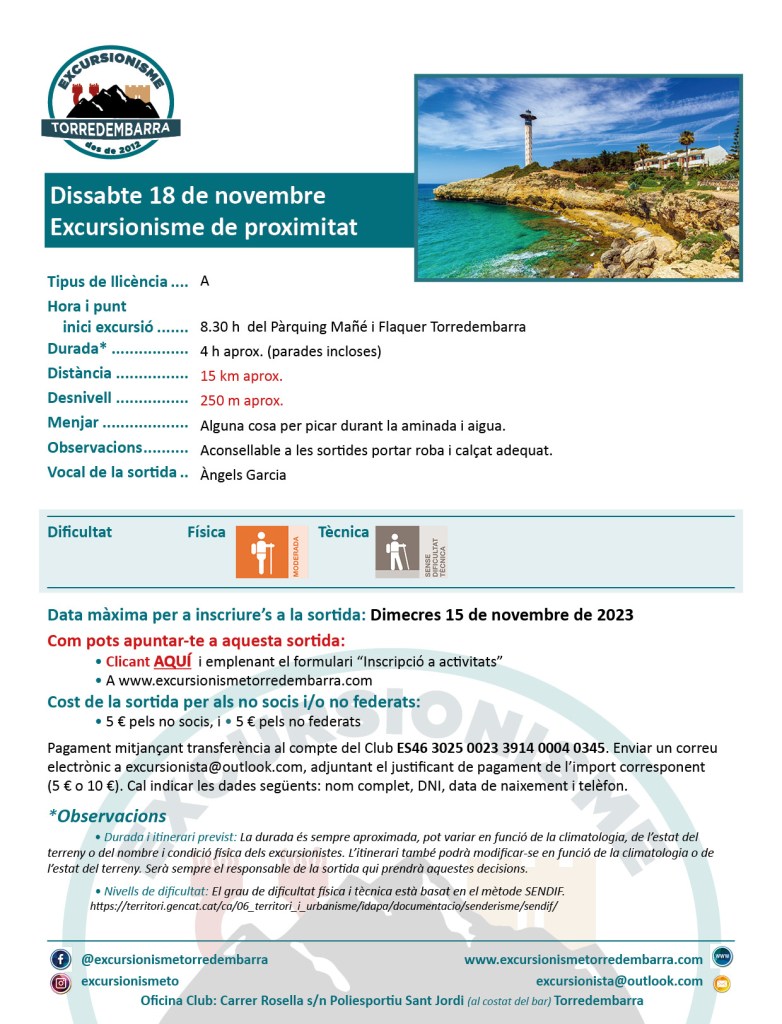 8 noviembre, 202320 noviembre, 2023 Excursionisme Torredembarra (18/11/2023) Excursionisme de proximitat Comparte esto: Compartir en X (Se abre en una ventana nueva) X Comparte en Facebook (Se abre en una ventana nueva) Facebook Me gusta Cargando...
