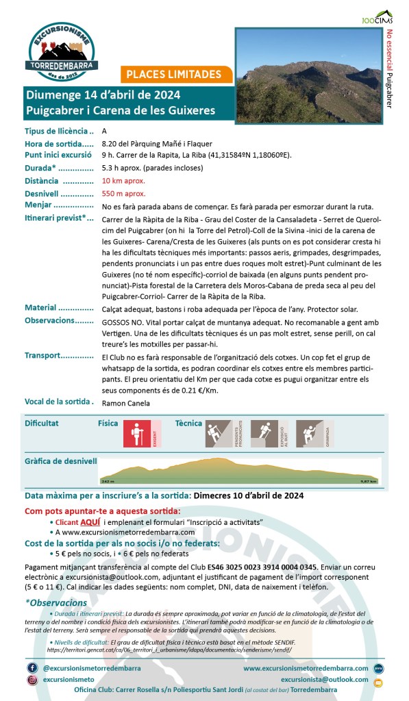 1 marzo, 202423 abril, 2024 Excursionisme Torredembarra (14/04/2024) Puigcabrer i Carena de les Guixeres Comparte esto: Compartir en X (Se abre en una ventana nueva) X Comparte en Facebook (Se abre en una ventana nueva) Facebook Me gusta Cargando...