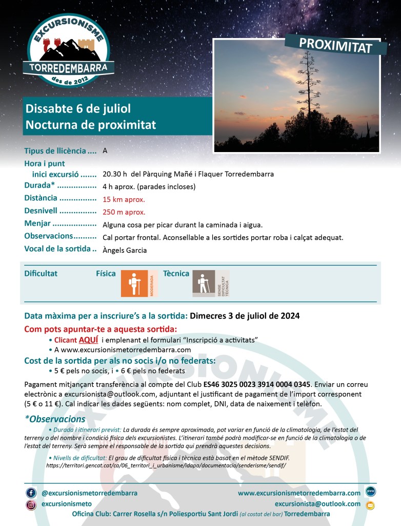 1 junio, 202412 julio, 2024 Excursionisme Torredembarra (06/07/2024) Nocturna de proximitat Comparte esto: Haz clic para compartir en X (Se abre en una ventana nueva) X Haz clic para compartir en Facebook (Se abre en una ventana nueva) Facebook Me gusta Cargando...