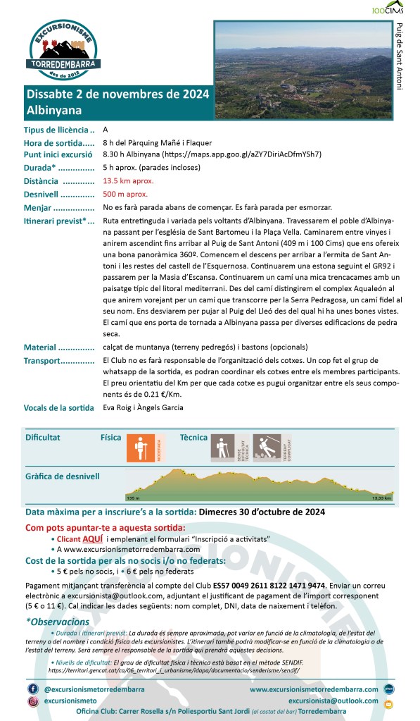 1 septiembre, 202417 noviembre, 2024 Excursionisme Torredembarra (02/11/2024) Albinyana Comparte esto: Haz clic para compartir en X (Se abre en una ventana nueva) X Haz clic para compartir en Facebook (Se abre en una ventana nueva) Facebook Me gusta Cargando...