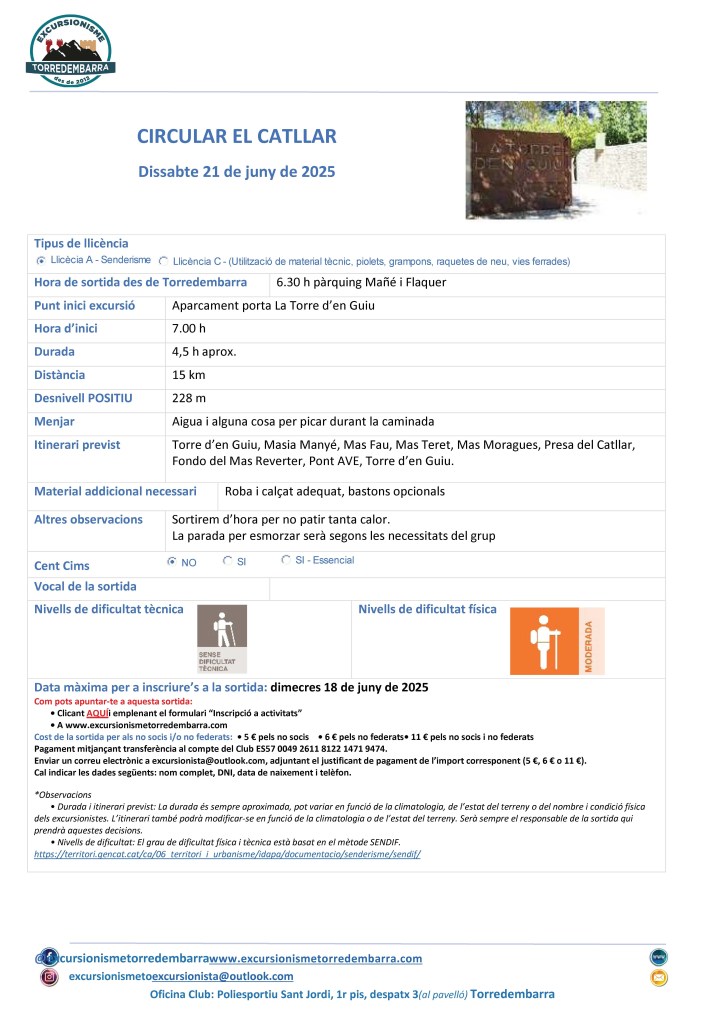 1 mayo, 202512 julio, 2025 Excursionisme Torredembarra (21/06/2025) Circular el Catllar Comparte esto: Haz clic para compartir en X (Se abre en una ventana nueva) X Haz clic para compartir en Facebook (Se abre en una ventana nueva) Facebook Me gusta Cargando...