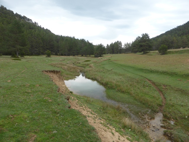 A la estona d’anar per la pista arribem a aquest punt, és un altre prat impressionant amb un riu en mig, no hi ha camí visible però anirem junt al riu “barranco la Melchora”