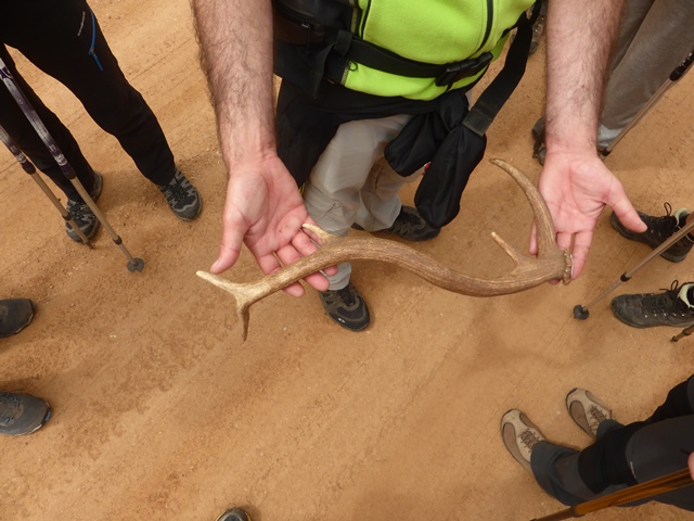 Anem alternant camins i pistes de terra i en una d’aquestes el guia te la gran sort de trobar una banya de Cérvol.